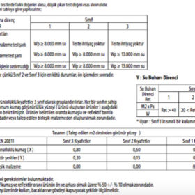 X : Su nüfuzuna direnç 980 +/- 50 Milimetre Su / Dakika hidrostatik su basıncı altında, aşağıdaki numuneler teste tabi tutulur ve değerlendirilir;